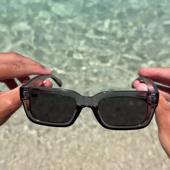 A refined expression of silent luxury. Cortina features a transparent grey frame with softly angular contours and deep black lenses. It’s a high-end classic—understated, versatile, and unmistakably elevated.